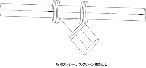 下図のように、分岐部に分岐ラインの直進形状部品が直付になっている場合も引抜き処理をしています。