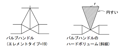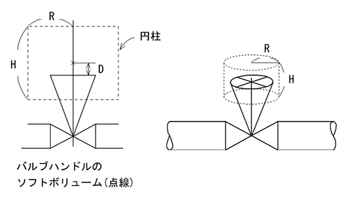 一般弁の逆止弁・止逆止弁のソフトボリュームの円柱形の、高さ、径はそれぞれハンドル高さ、ハンドル径に対応しています。