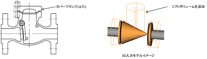 V.6.80より逆止弁の干渉チェック機能強化のためソフトボリュームを追加しました。逆止弁を使用している既存のJobにエラーが発生する可能性がありますので「逆止弁のカバーフランジ(ふた)」を参照し、D.B.の更新をお願いいたします。
