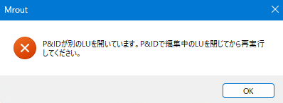Lu内に起動可能なP&ID図面データがないと次の警告メッセージが現れます。