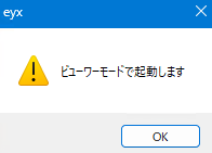 EYEPIDのライセンスがないとEyxをビューワーモードで起動し以下のメッセージが現れます。