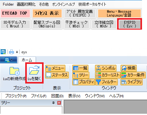 前述の「EYEPID(eyx)を起動してLuを開く」の手順でP&IDのLuを開きます。