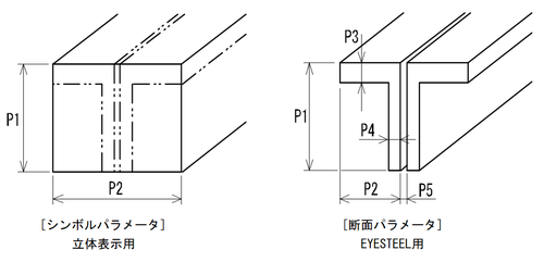 - 立体表示用のみ(EYESTEELを使わない場合)であればシンボルパラメータ(P1:高さ,P2:幅)の入力だけして下さい。