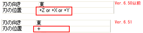Ver.6.51より「刃の位置」のプロパティ表示は「+Z or +X or +Y/-Z or –X or -Y」から「+/-」と変更しました。