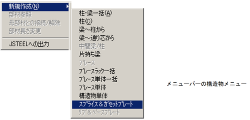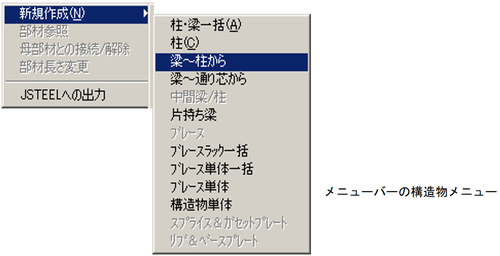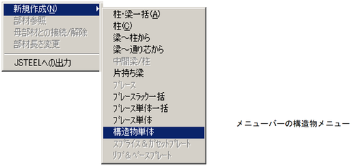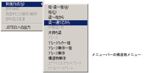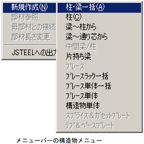 メニューバーより、〔構造物(S)〕-〔新規作成(N)〕-〔柱・梁一括(A)〕を選択します。