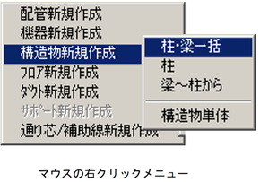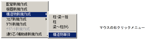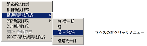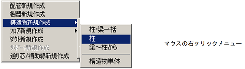 または、マウス右クリックのポップアップメニューから〔構造物新規作成〕-〔柱〕を選択します。
