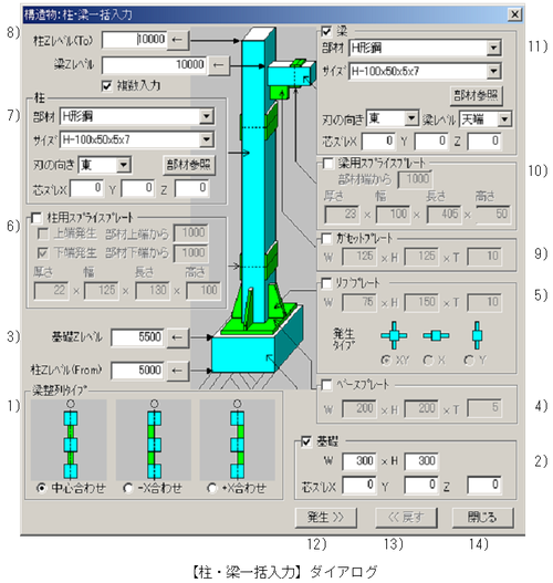 【柱・梁一括入力】ダイアログにて設定