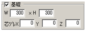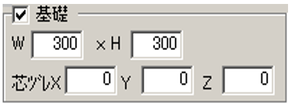 基礎のサイズ、補助線・通り芯に対する芯ズレを設定します。