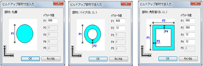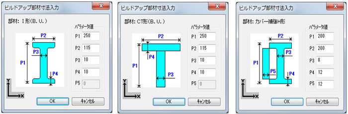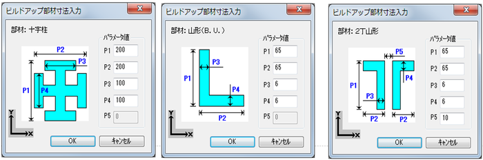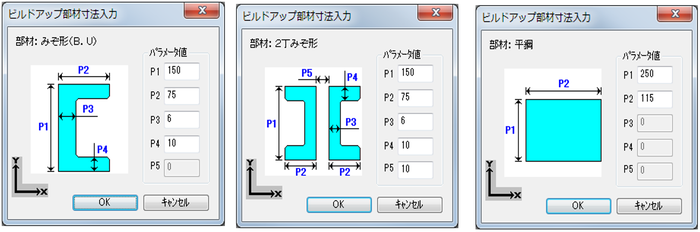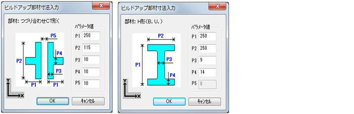ビルドアップ部材の寸法入力パラメータ一覧