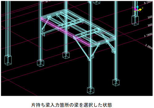 階段の張出部や踊り場等の柱、梁からの片持ち梁をを入力します。