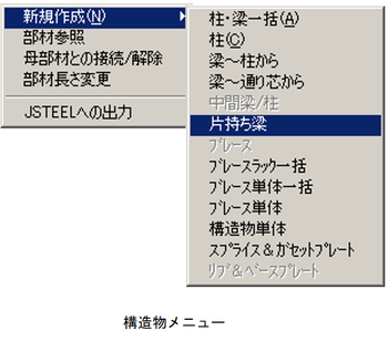 メニューバーより、〔構造物(S)〕-〔新規作成(N)〕-〔片持ち梁〕を選択します。