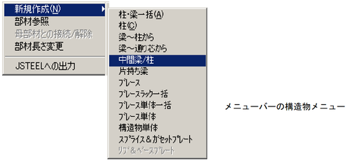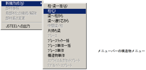 メニューバーより、〔構造物(S)〕-〔新規作成(N)〕-〔柱(C)〕を選択します。