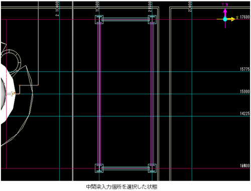 柱・梁入力用の補助線の交点選択