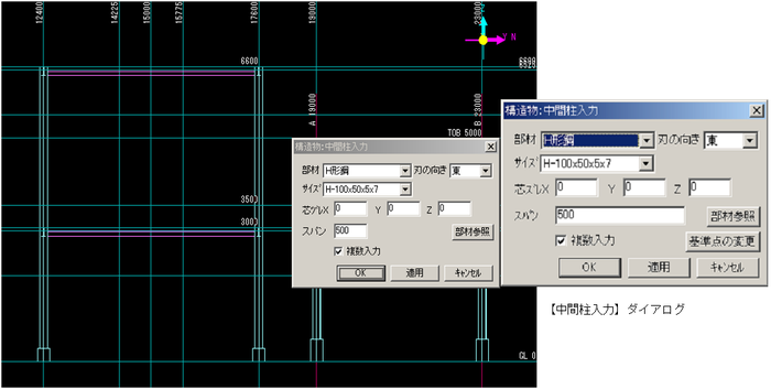 【柱入力】ダイアログにて設定