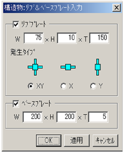 基礎にリブプレートを入力する場合、「リブプレート」にチェックを入れ、「発生タイプ」を選択し、リブプレートのサイズを設定します。