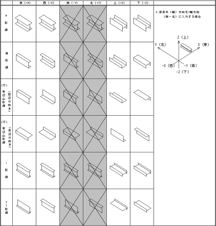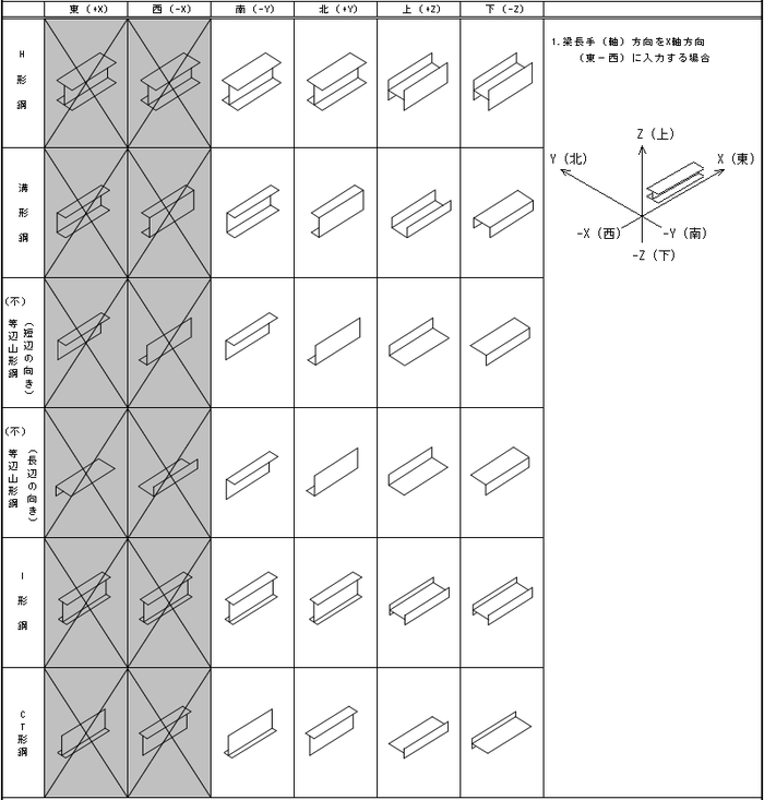 ) - 斜め梁、ブレースの刃の向きも同様になります。