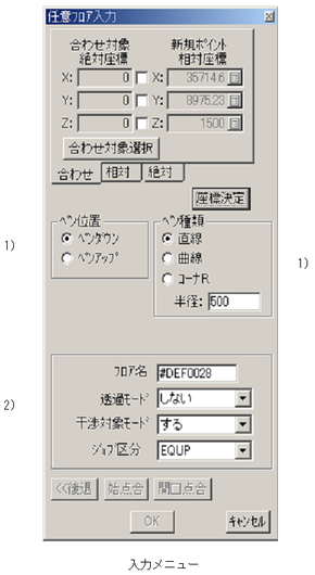 円、長方形等、定形以外の任意の形状フロアを入力する場合に使用します。