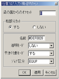 【任意フロア入力(構造物から)】ダイアログが表示されるので、必要なパラメータを入力し、[OK]ボタンをクリックします。