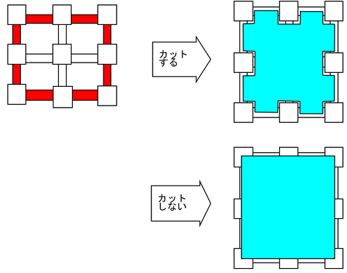 同じ高さにあるフロアの一部が重なっている場合には、立体組図編集でその部分が陰線処理されてしまいます。