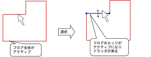 面フロアとフロアを構成するエッジ・ポイントの操作は、以下のように行います。