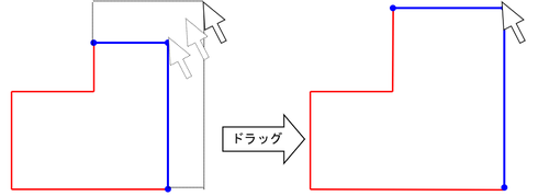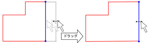 アクティブになったエッジをドラッグ、または座標値入力します。