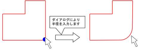 - ペン位置をペンダウン、ペン種類をコーナRに設定します。