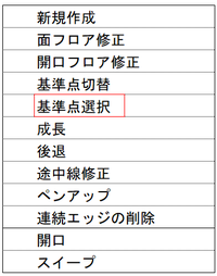 メニューバーより〔フロア(R)〕-〔基準点切替(B)〕を選択、またはマウスの右クリックでボップアップメニューを表示し、〔基準点切替〕を選択することで、半時計回りに基準点が移動します。
