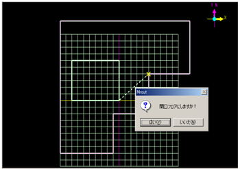 最後に、[始点合]で内線フロアを閉じると、「開口フロアにしますか?」が表示されます。