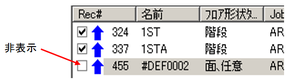 後退前のフロアを表示したり、後退前のフロアに“合わせ”たい時は、一覧ウィンドウで選択されているフロアにレチェックを入れてください。
