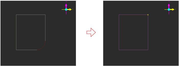 - クロスしないように[取合いコーナー点変更]をクリックし、修正を行います。