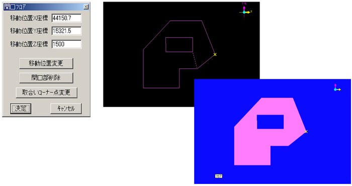 (取消す場合は[キャンセル]ボタンをクリックします)ダイアログの詳細は「開口フロア修正」を参照
