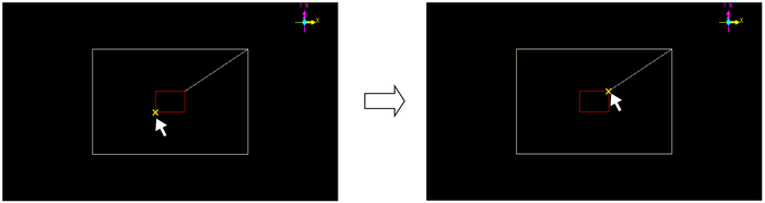 メニューバーより〔フロア(R)〕-〔基準点選択〕を選択、またはマウスの右クリックでポップアップメニューを表示し、〔基準点選択〕を選択した後に、マウスカーソルにて移動したい基準点をクリックします。
