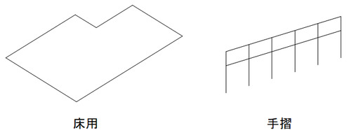 敷地、床面、壁、階段、手摺等。その他複数組合せることにより、機器、構造物等の既存のシンボルで表現できない形状も表現できます。