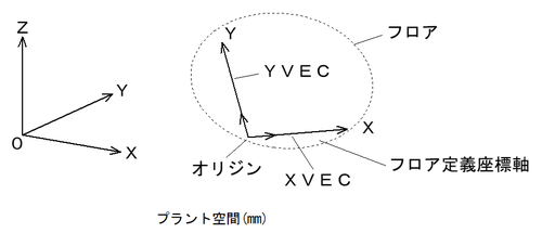 Fileに記録されるDataとしてはフロア定義座標軸(X軸,Y軸)のプラント空間上での方向(X軸ベクトル、Y軸ベクトル)で表わされます。