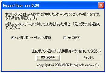 Ver.5以前で作成したラダーDataのオリジンがラダーの幅半分だけずれる不具合が生じます。プログラムRepair Floorで、このずれを修正することが可能です。