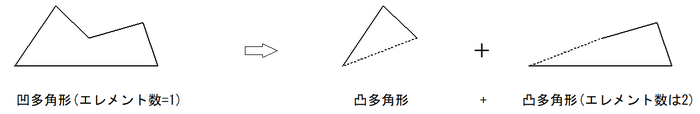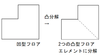 凹部フロアとしてタイプ指定のあったものにつき凸分解処理されます。本処理によりエレメント数は増加します。