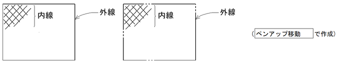 内線の模様のみ必要な場合は上図の様に外線を非作図線([ペンアップ移動])で入力して下さい。