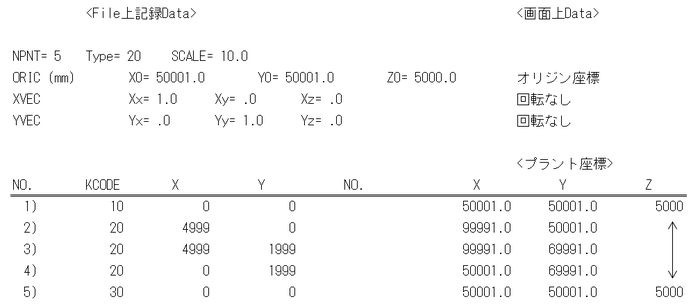 上記の左側Dataの様にFileに記録されるため、Data修正時に再現されるプラント座標系上のDataは右側の様になります。
