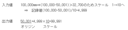 現状プログラム的には32,700(mm)でチェックしており、32,700mmを超えるとスケールを1→10に変更し、記録する座標値を35,000→3,500と1/10にします。