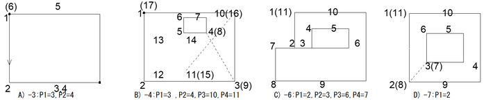 | -5 | (P1,P2),(P3,P4) | 同じ向きの同一線分あり | 点対、点対 | |