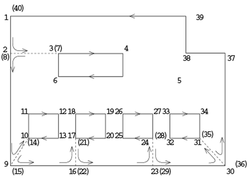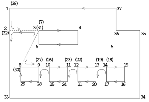 コーナー点(外線)はフロア定義座標上で反時計廻りに追って行き、スタート点に戻って(閉じて)終了して下さい。(対話入力時時計回りに入力すると入力終了時点で向きが逆転して記録されます。)