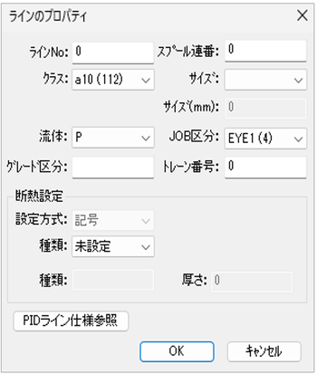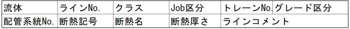 - クラス、流体、Job区分、断熱設定(記号)で表示する項目は、プラント性定義で設定した項目です。