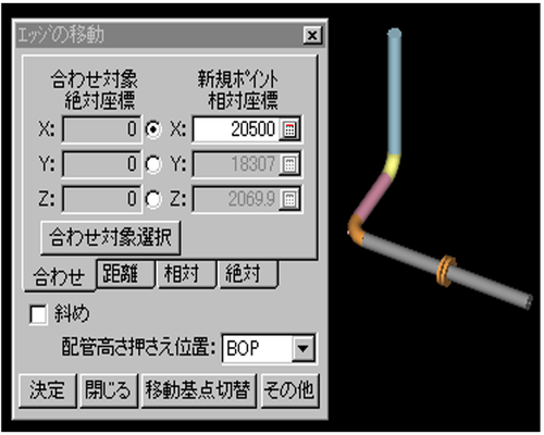 配管ラインの移動、コピー時のダイアログは、成長時の【ポイントの追加】ダイアログと多少異なります。
