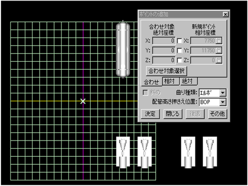 - 新規ポイントに配管入力を開始する座標値を設定してください。