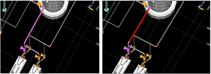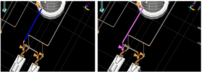 - 分岐させる配管をClickします。配管がピンク色に変わります。(一次選択状態)