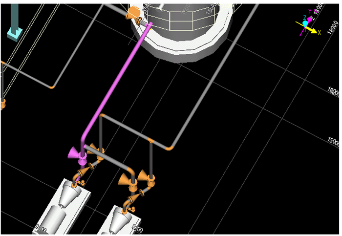 - 分岐配管は表示上母管表面から分岐していますが、実際の分岐始点は母管中心となるので注意してください。