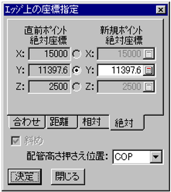 - 【エッジ上の座標指定】Dialogが表示されます。