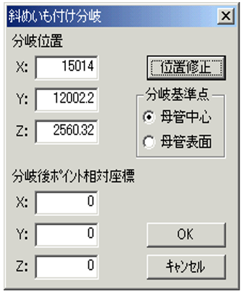 - 分岐の基準点,分岐後ポイントの相対座標を設定し、[OK]をClickしてください。
