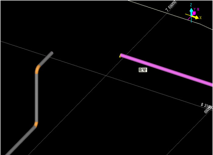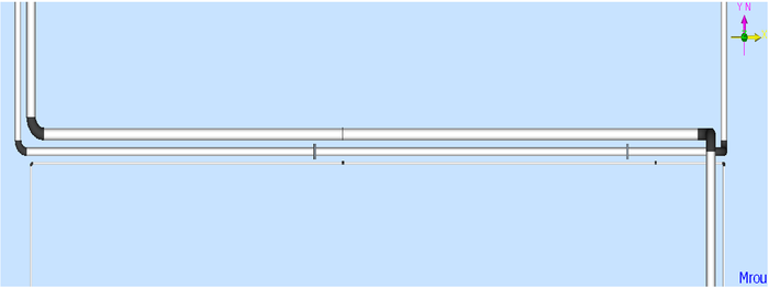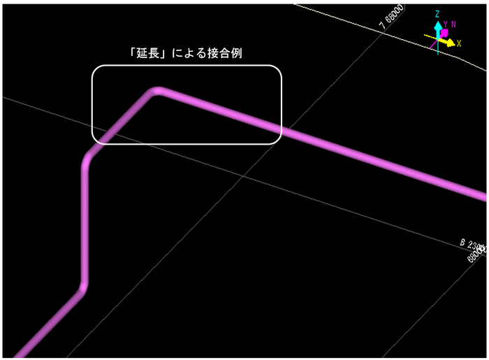「延長」は、2本の配管ラインの末端から配管を延ばし、双方の延長線上で2本の配管を最短距離で接合します。
