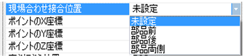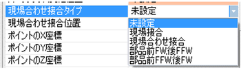 プロパティウインドウの[現場合わせ溶接タイプ]を[未設定],[現場溶接],[現場合わせ溶接],[部品前FW,後FFW],[部品前FFW,後FW]から選択します。